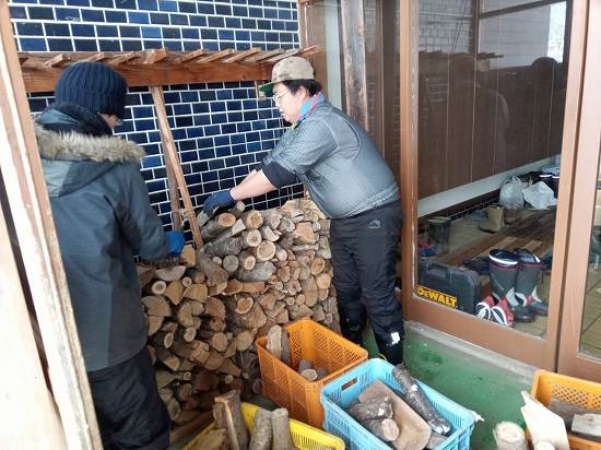 最近は薪が減るのが早く天候の良いときを見計らい運んでおります(>_<)お疲れ様です。