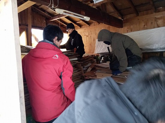本日午前の作業は、灯油入れ、薪運び、資源ごみの整理!!