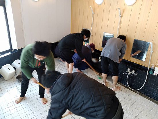 本日午前の作業は、食器洗い&風呂掃除、畑への通路確保!!