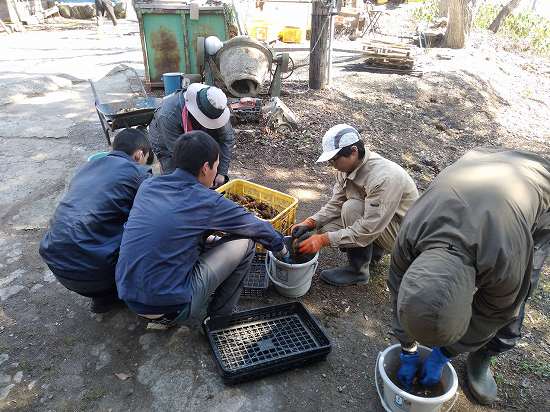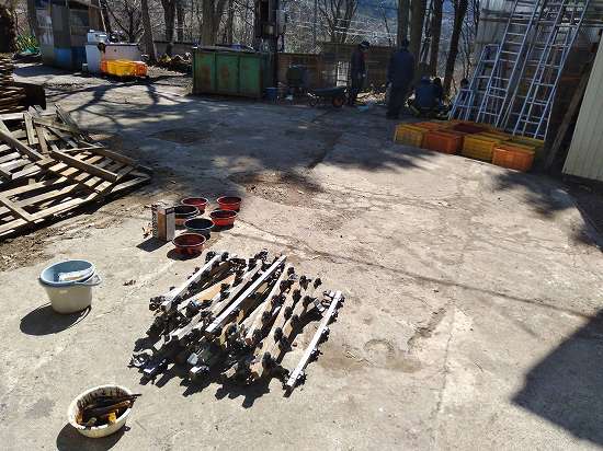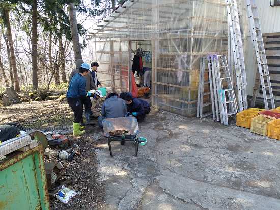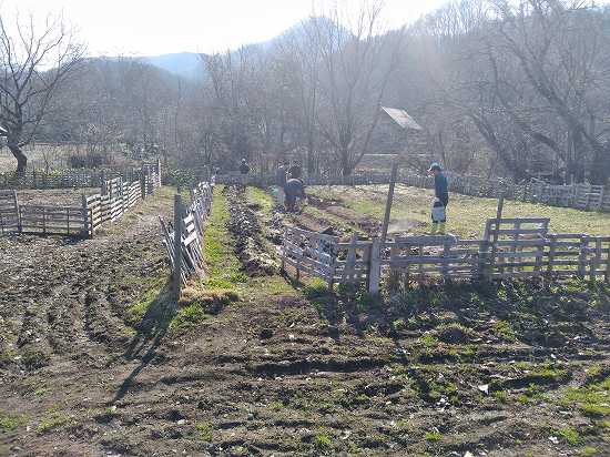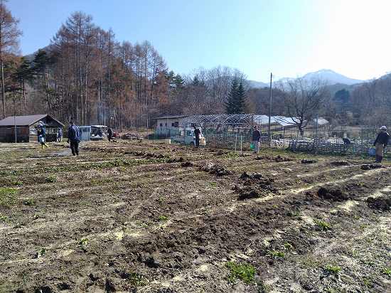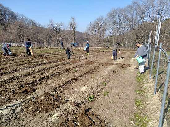 本日午前の作業は、畑にて肥料撒き&柵の補修!!