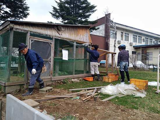 本日午前の作業は、スノコの釘抜き&ウサギ小屋雪囲い撤去!!