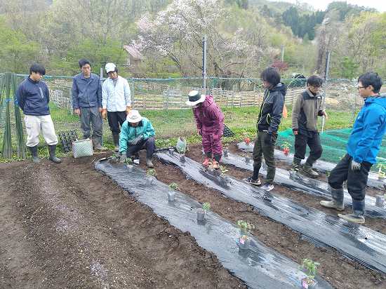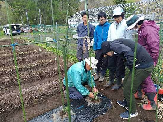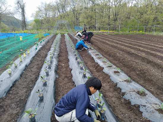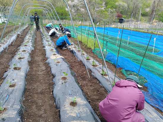 午後は苗の定植&苗の誘引を行いました(*^-^*)