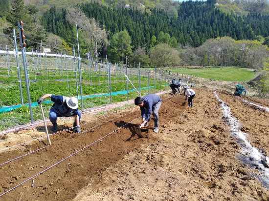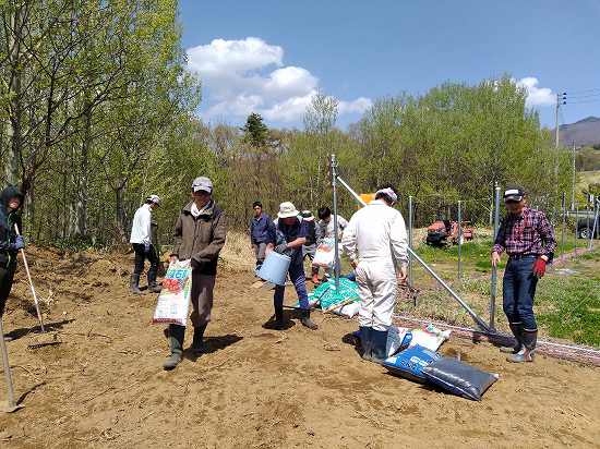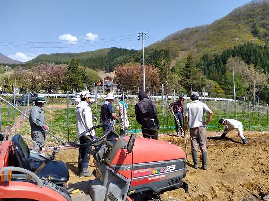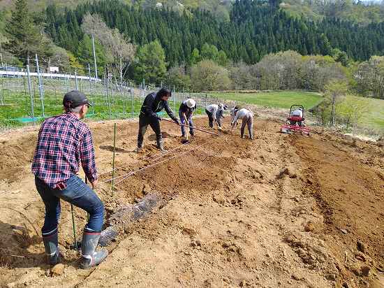午後はブドウ畑で畝作りのお手伝いを行いました(^-^)