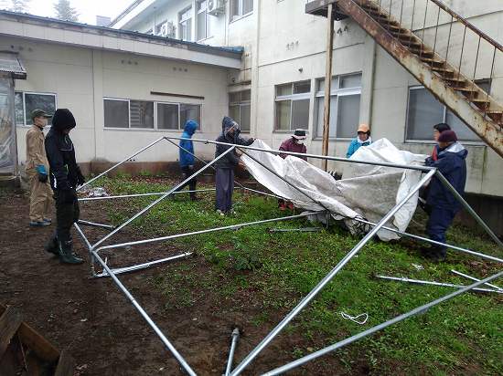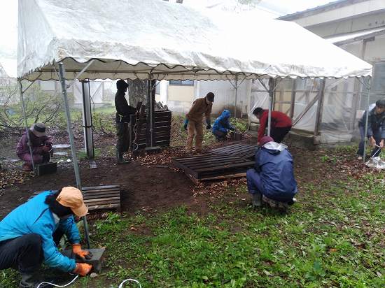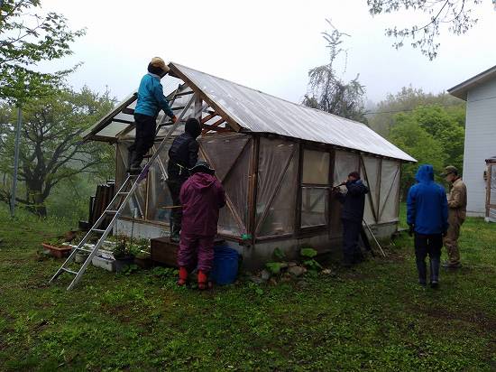 午後は苗小屋の修繕&物干し場の設置を行いました(/・ω・)/