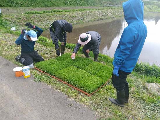 本日午前の作業は、稲の受け取りと除菌剤撒き&クロ作り