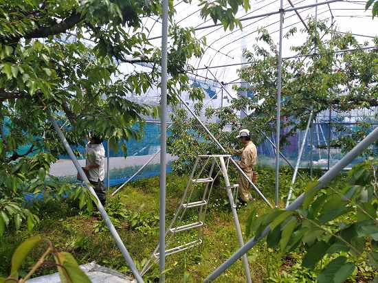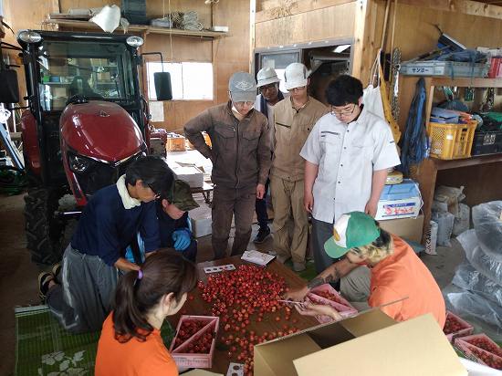 本日は一日中、卒寮生の果樹農園でサクランボ収穫&選果作業を行いました(*´ω`*)
