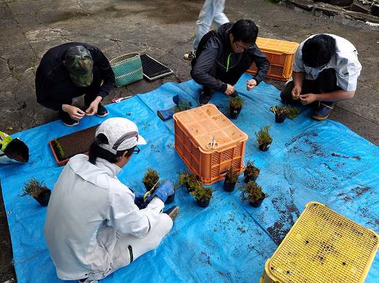 さし芽とは、芝桜の先を3㎝ほど切って増やすためにポットに移植する作業ですww