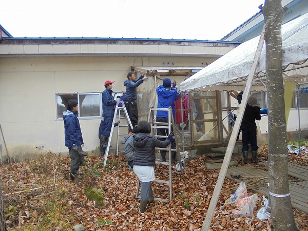 続いては11月24日、本館の雪囲いと、26日、薪収納小屋の補修作業の様子。 雪囲い作業の画像は何故かこれ1枚しかなかったので・・・。実際にはこの防雪板を全館で20枚ほど設置しています。5年に一度くらい、この雪囲いがあって […]
