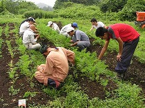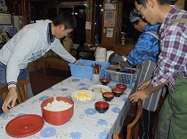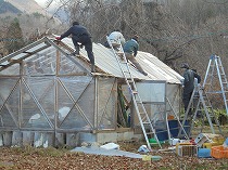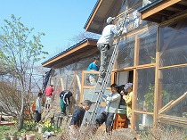 共同生活の中で日常の生活習慣を整える事。具体的には自己管理(身の回りの整理整頓、掃除、洗濯、入浴、時間・ルール厳守等)の習慣付けに始まり、共同作業活動(農作業、土木・木工作業、山菜採り、スキー実習等)や当番(動植物の世話、食事・掃除当番、接客訓練等)の実践を通し、規則正しい生活サイクルの習得と維持を最優先事項とします。その上で、日常作業のみでなくランニングや球技、スキーなどのスポーツを通じ、仕事や学習が継続できるだけの体力増強に並行して取り組みます。体力増強は、必然的に我慢・忍耐等の精神的能力の向上に繋がります。